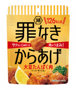 湖池屋から、新しい食の形の提案です。いつでもどこでも、たんぱく質を美味しく手軽にとれたら。1袋126kcalで、罪悪感少なく食べられる、大豆たんぱく質でつくった次世代のからあげです。